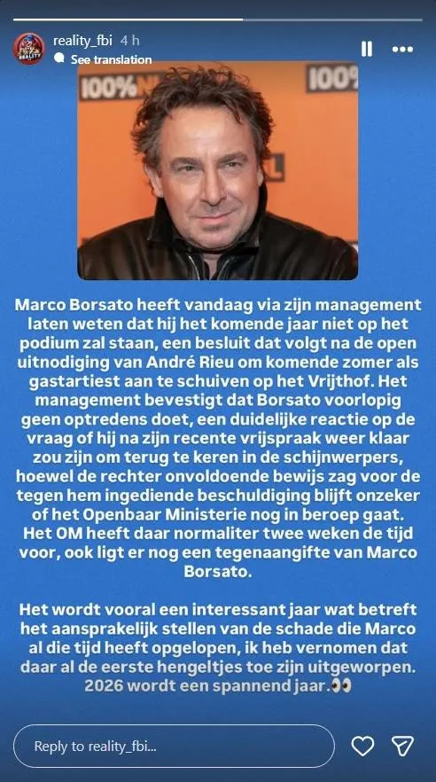 Marco Borsato zou juridische stappen overwegen na vrijspraak: “2026 wordt spannend jaar”