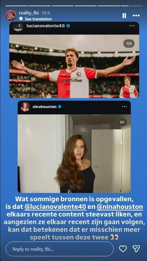 Dat extra spotlicht leverde al snel de eerste geruchten op. Het Instagramkanaal RealityFBI, dat vaker vermeende relaties van influencers en BN’ers signaleert, merkte op dat Valente en een bekende influencer sinds kort opvallend veel interactie met elkaar hebben.