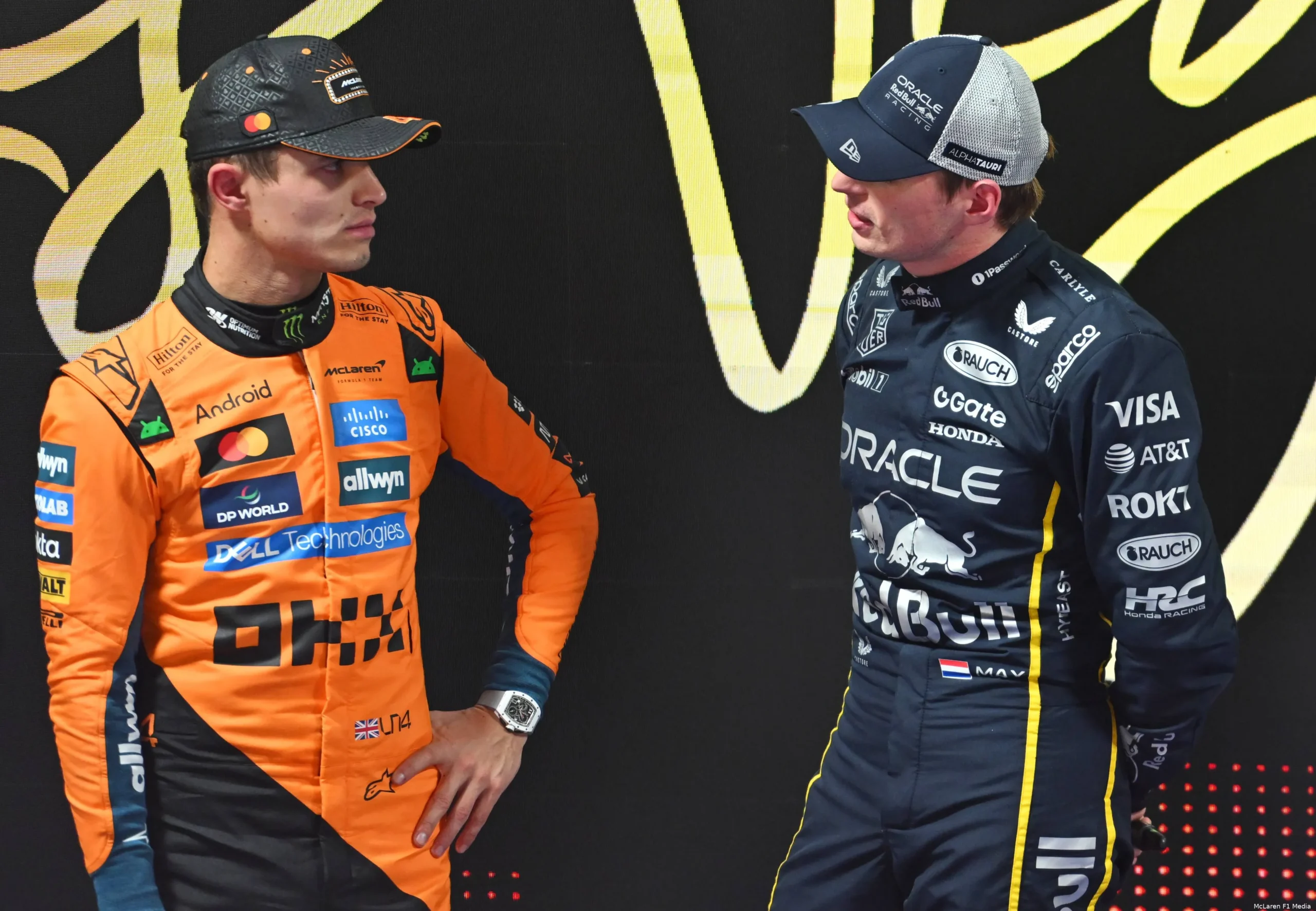 Norris staat eerste, maar voelt de hete adem van Verstappen in zijn nek.