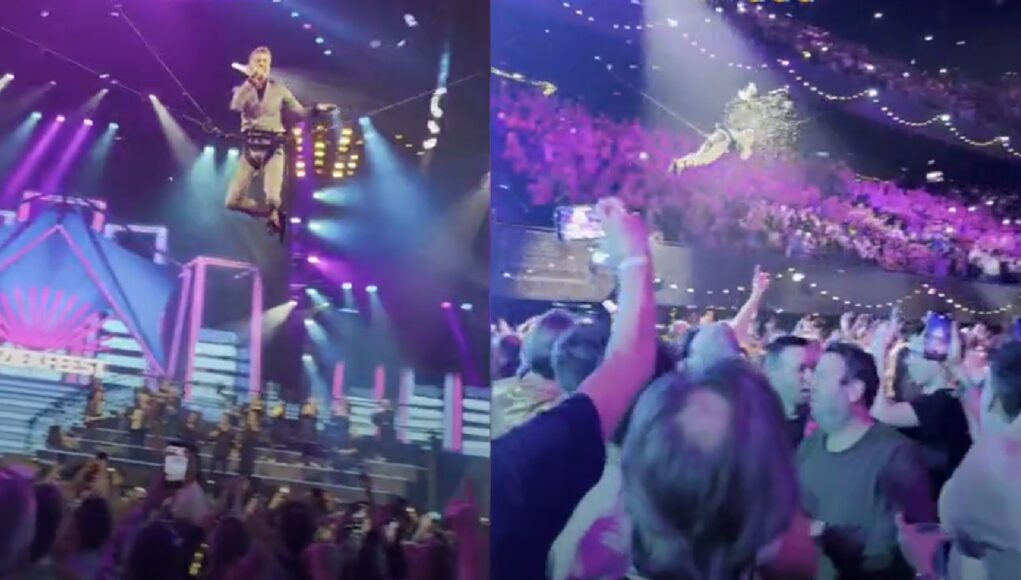Mart Hoogkamer bekogeld met liters bier terwijl hij door Ziggo Dome vliegt en kan geen kant op