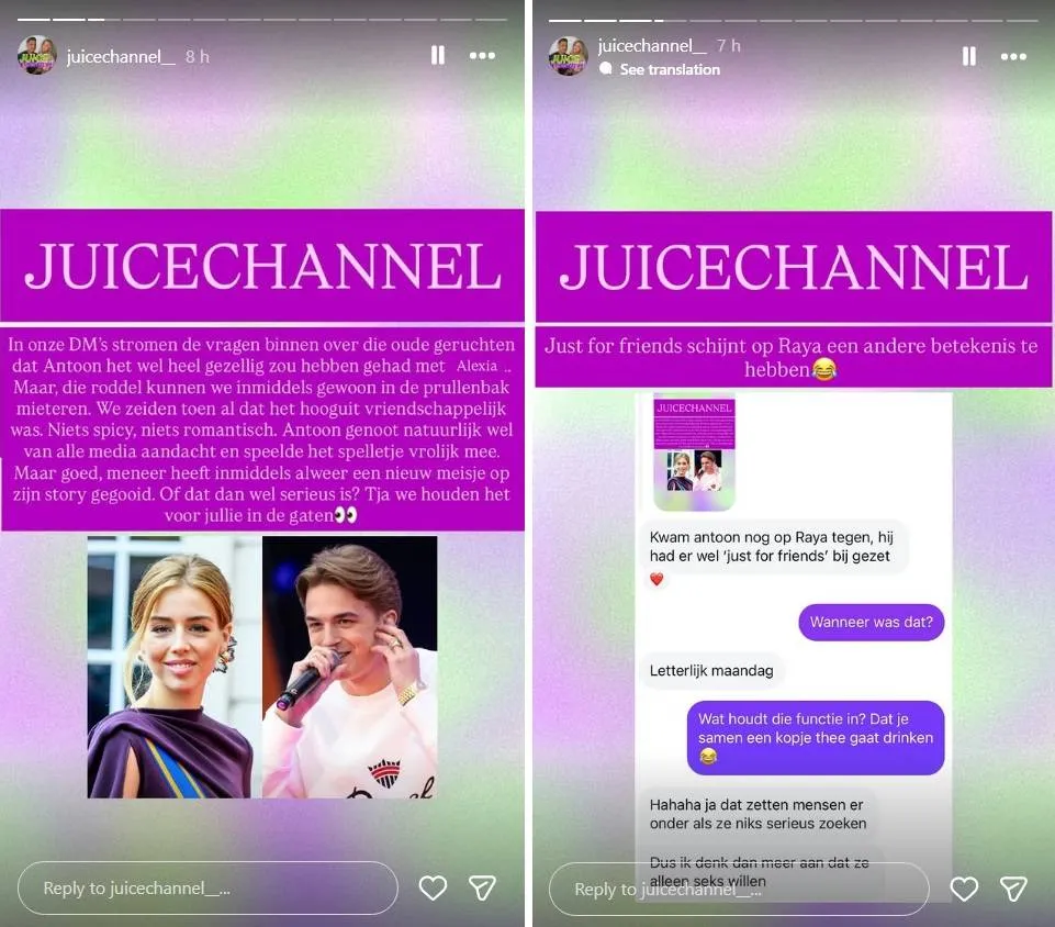 Het Instagramkanaal Juicechannel, dat bekendstaat om het ontvangen van tips van volgers, plaatste onverwacht een opvallende nieuwe claim. Een volger zou Antoon maandagavond hebben gespot op Raya, een exclusieve internationale datingapp die vooral wordt gebruikt door artiesten, influencers en modellen. Volgens de tipgever was het profiel duidelijk authentiek, inclusief foto’s en bio.