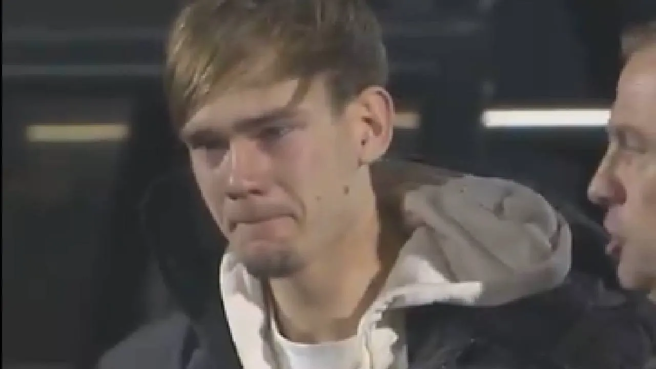 Jong Ajax-speler die zijn vriendin vorige week verloor breekt in het stadion tijdens eerbetoon