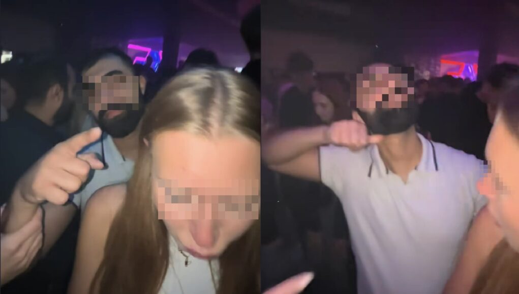 Enorme griezel bedreigt jongedames met de **** in bizarre video in nachtclub