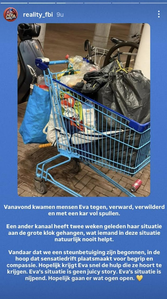 Beelden van dakloze Eva van de Wijdeven met een winkelkarretje gaan rond: ‘Hartverscheurend’