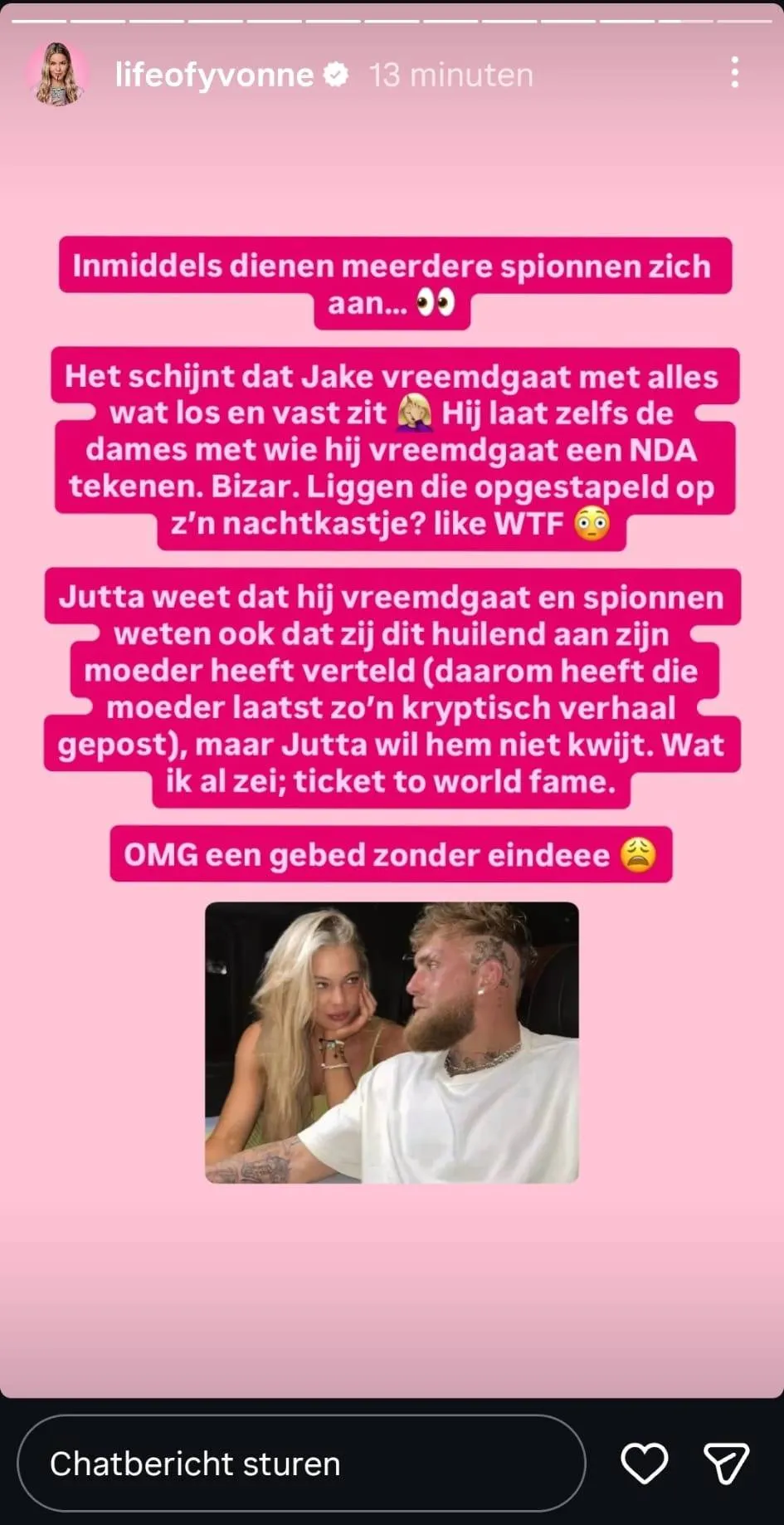 Via sociale media deelt Coldeweijer dat meerdere bronnen zich zouden hebben gemeld met verhalen over het gedrag van Jake Paul. Volgens deze berichten zou er sprake zijn van ontrouw, iets wat meteen veel aandacht trok online.
