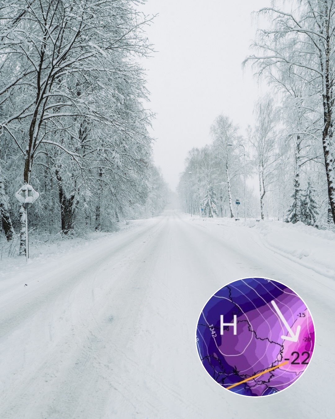 Het belangrijkste weersysteem speelt zich af boven het noordoosten van Europa. Daar vormt zich een krachtig hogedrukgebied dat koude lucht vasthoudt. Op 1500 meter hoogte dalen de temperaturen in Rusland tot -22 graden, en die vrieslucht begint langzaam uit te waaien richting Scandinavië en Polen.